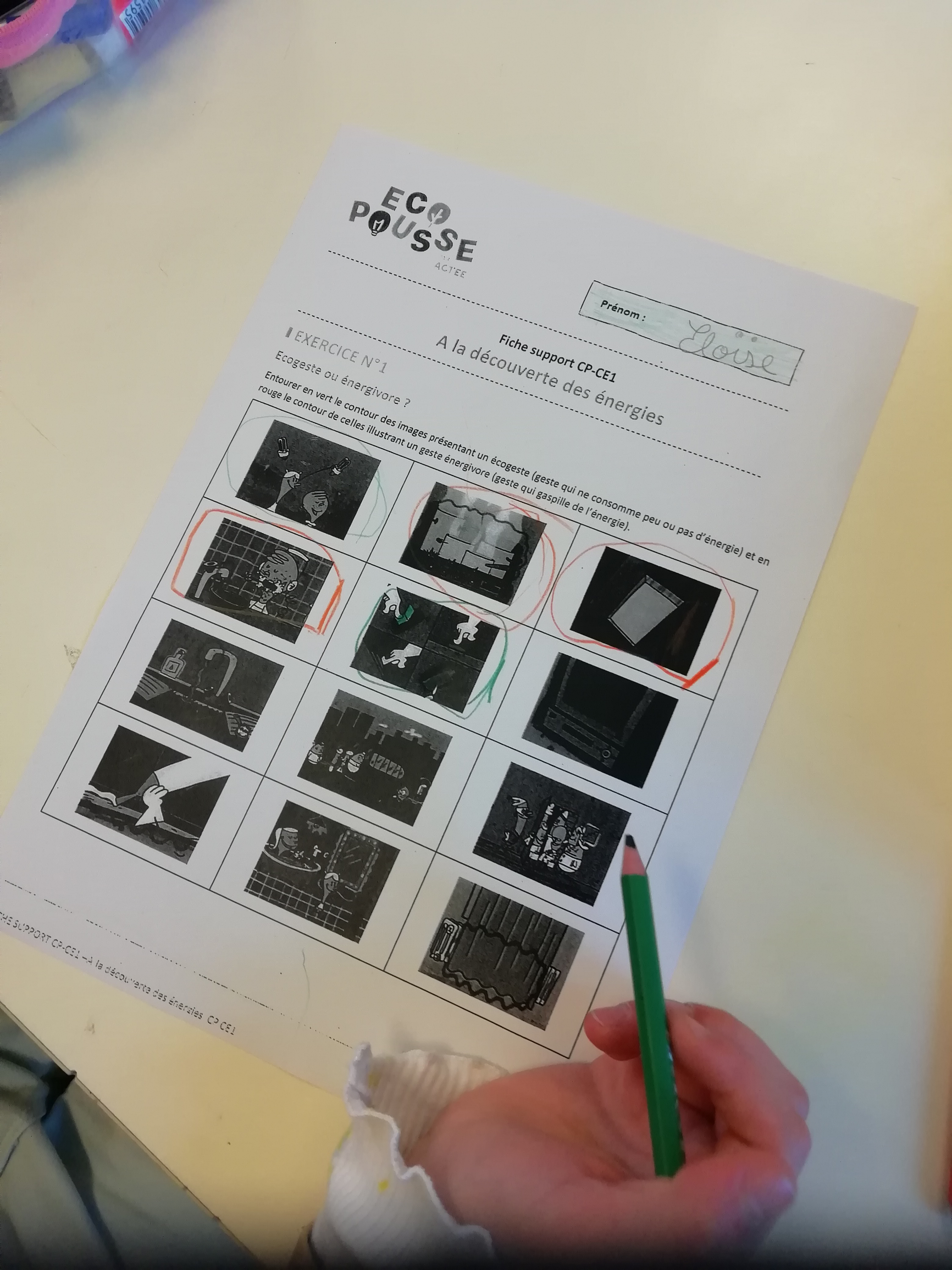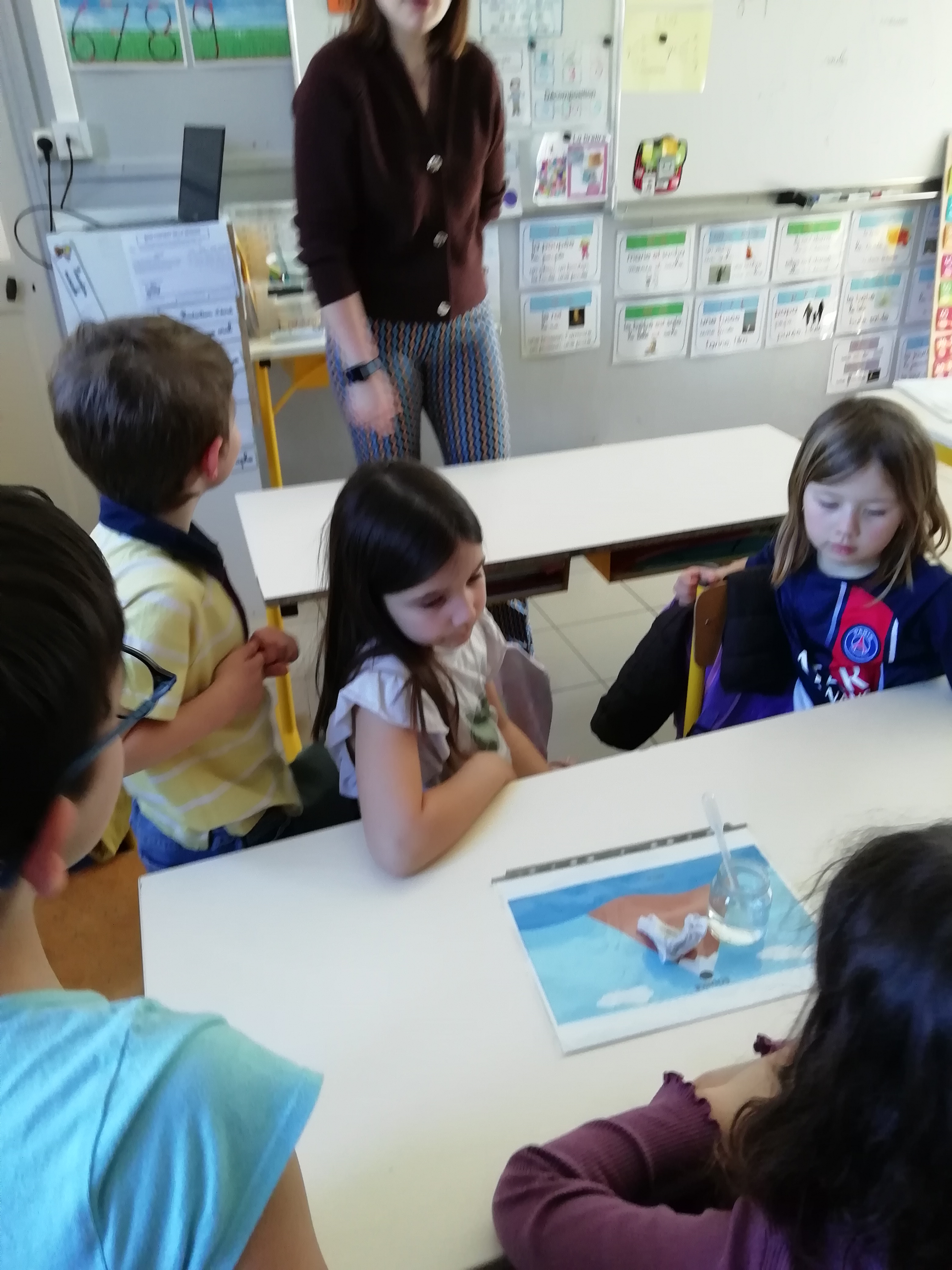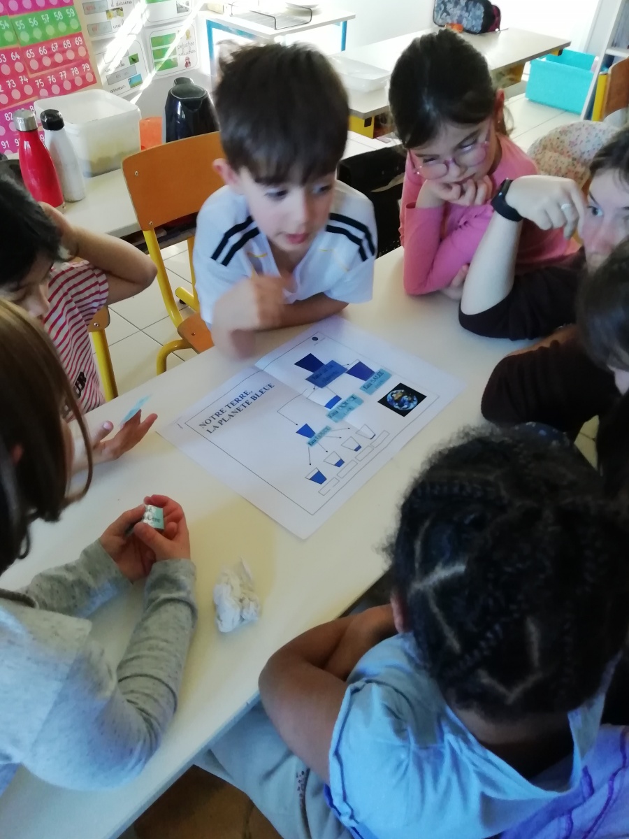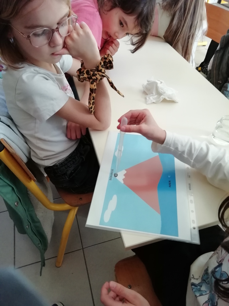 Ce petit compagnon nous a sensibilisé aux économies d’énergie. Puis, nous nous sommes intéressés au voyage de Perlette, la petite goutte d’eau. Grâce à différents ateliers pratiques, le cycle de l’eau naturelle n’a maintenant plus de secret pour nous !