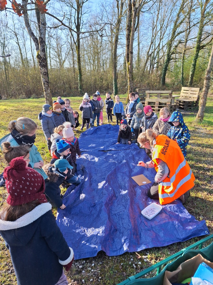 Aujourd’hui il fait beau ! Chouette, nous partons en classe près de l’étang pour notre matinée Ecole Dehors.