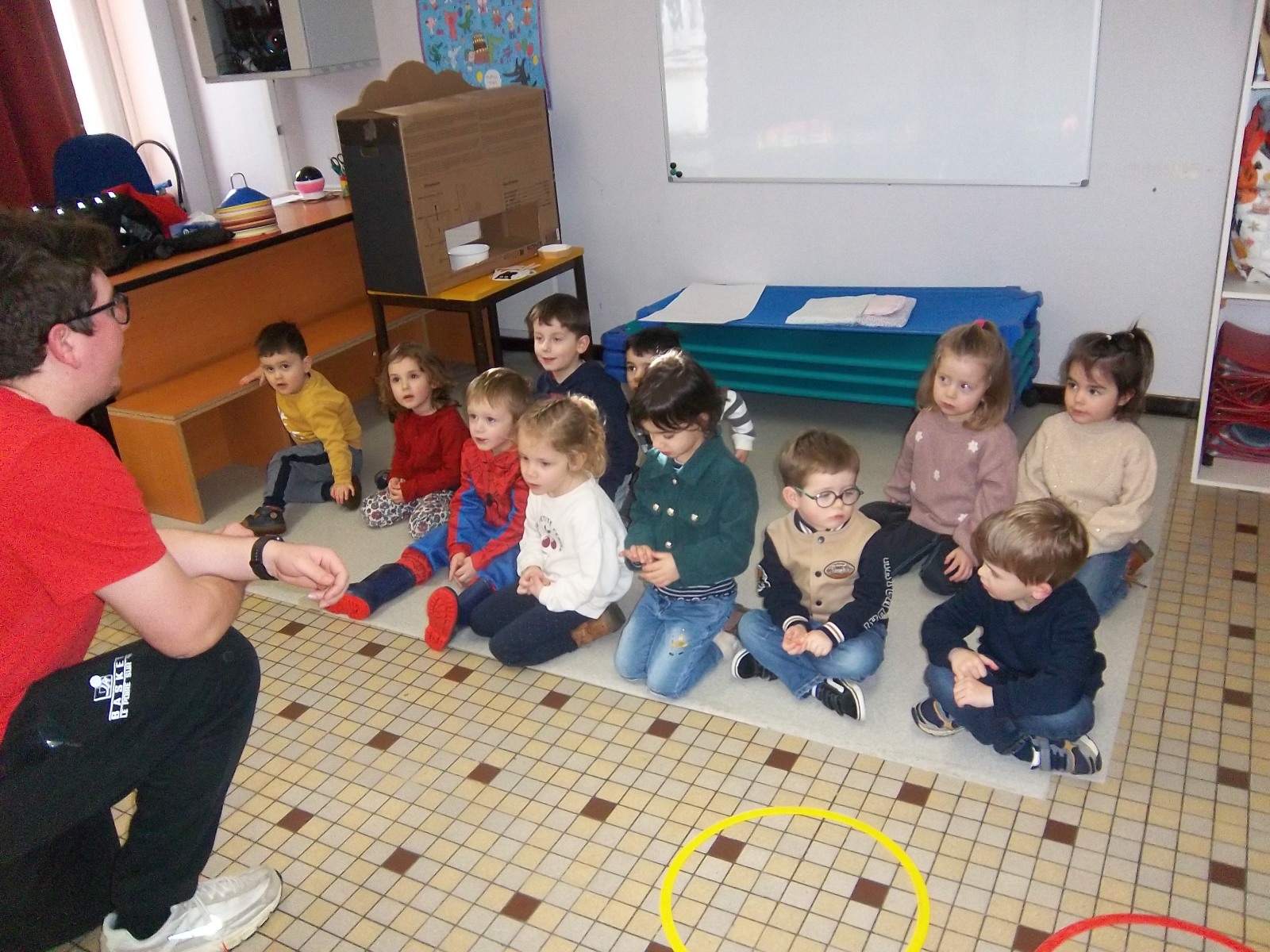 Pendant la période 3, Thomas, éducateur sportif au BC2E, est venu tous les vendredis proposer des ateliers sportifs aux élèves de cycle 1. A chaque séance, les enfants ont découvert un nouvel univers : la ferme, les dessins animés, la neige, le tri des déchets… Ils ont pu évoluer de façon ludique, sur différents parcours, avec ou sans ballon. Un grand merci à Thomas !!!