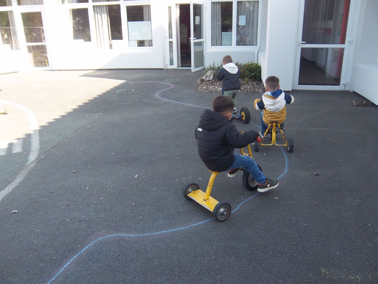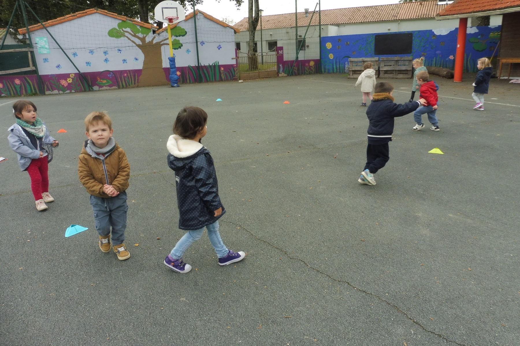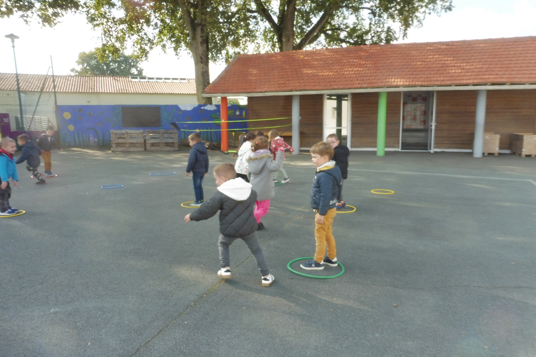 Tous les matins, après la récréation, les élèves de cycle 1 (PS, MS et GS) font du sport tous ensemble.