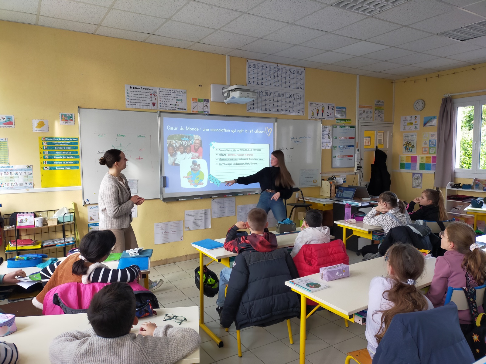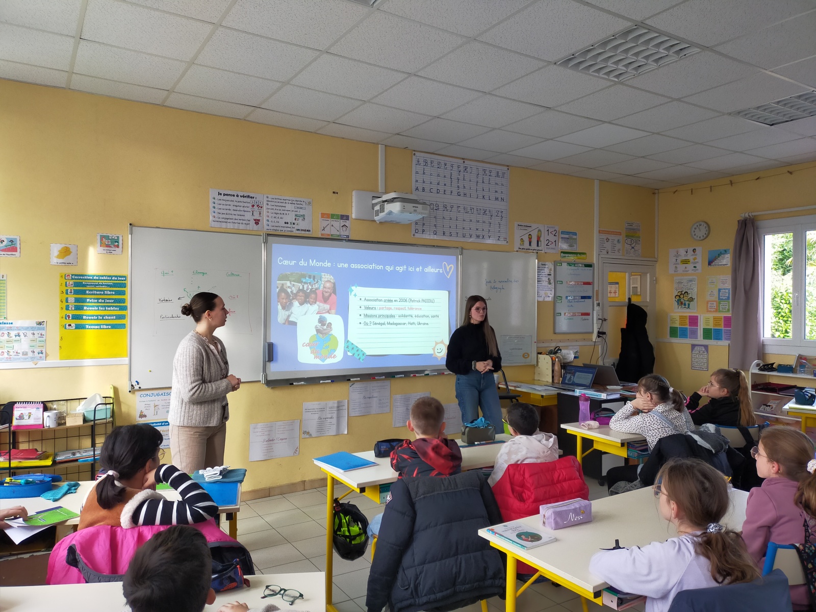 Le jeudi 20 novembre, Romane et Chloé sont venues à l’école pour nous présenter leur mission humanitaire avec l’association “Cœur du monde”. Elles vont partir au Sénégal du 28 février au 14 mars 2026.