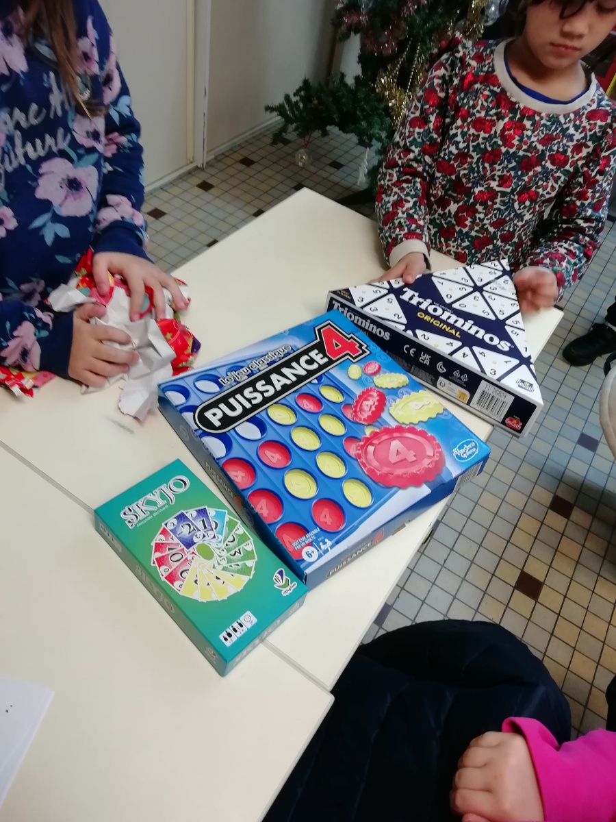 de les ouvrir. Le Père-Noël nous a offert 3 jeux : Puissance 4, skyjo et triomino.