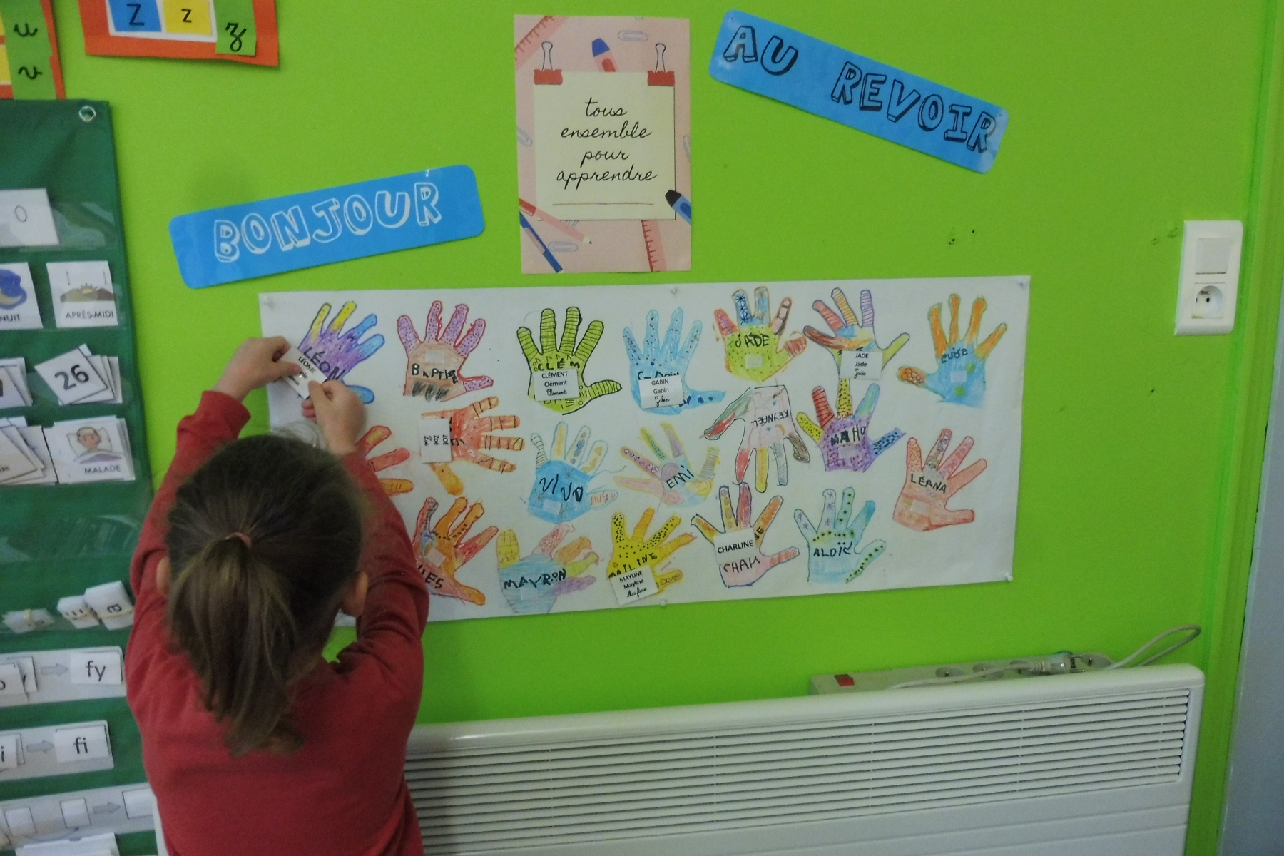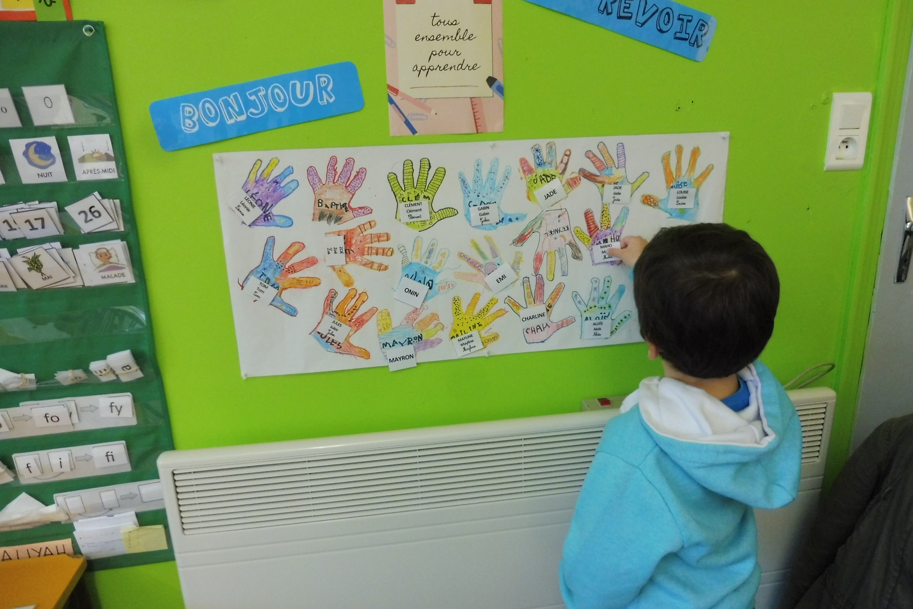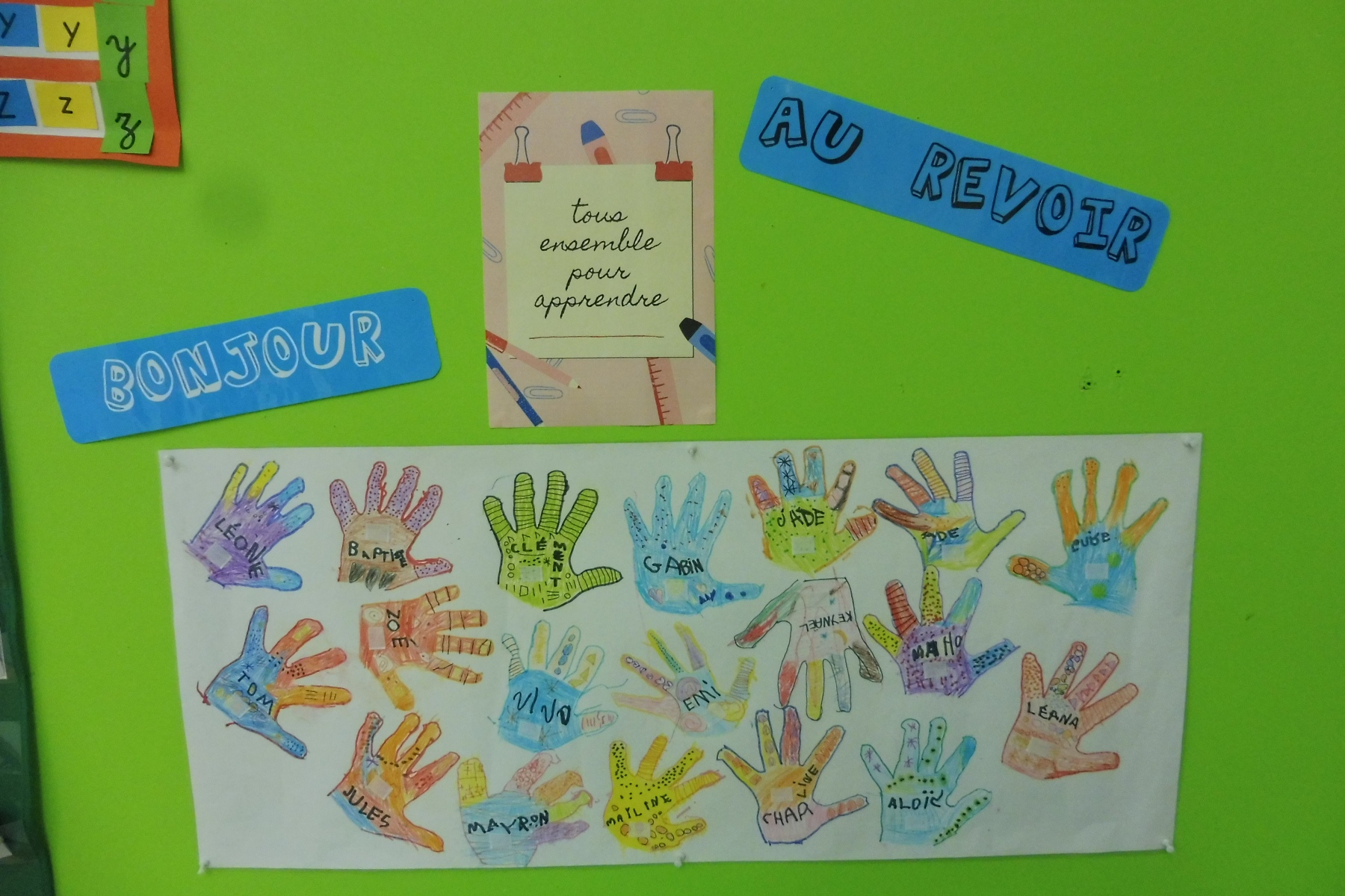 Depuis le lancement du projet en septembre, nous avons bien compris que pour apprendre nous avons besoin des autres. Nous avons donc créé notre panneau de présence et la décoration de la porte d’entrée pour montrer notre volonté de travailler main dans la main.