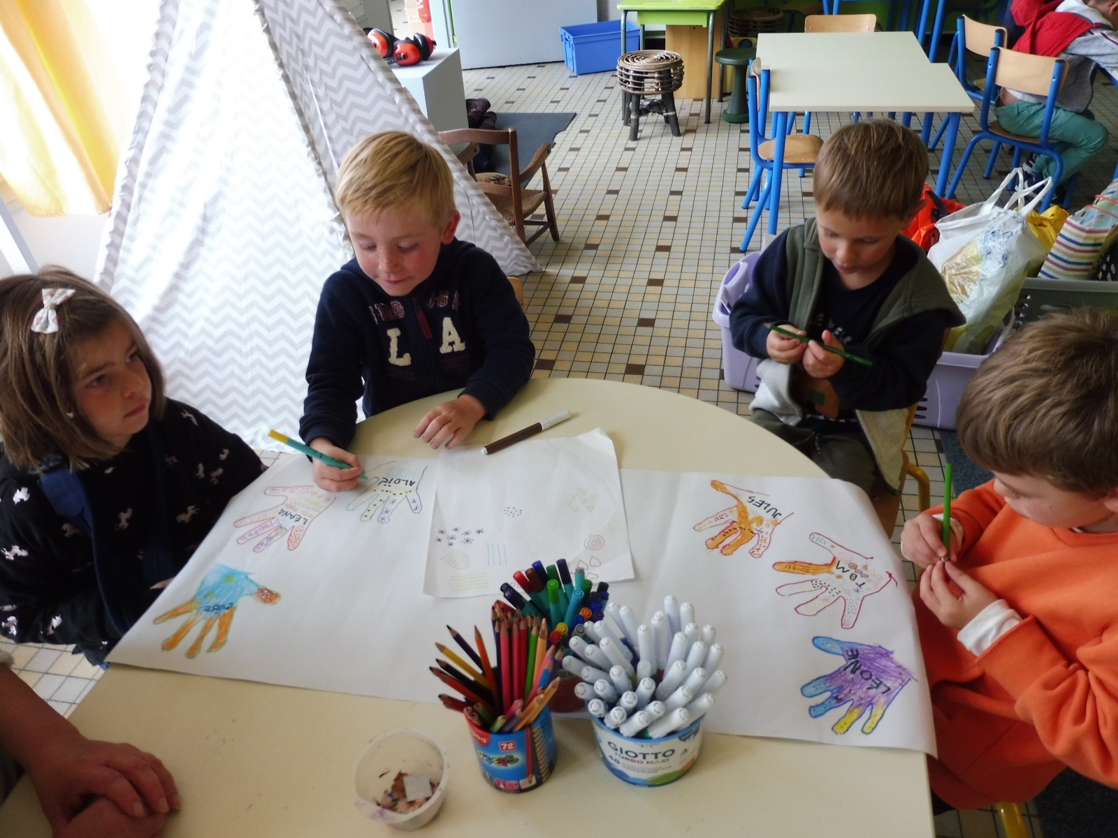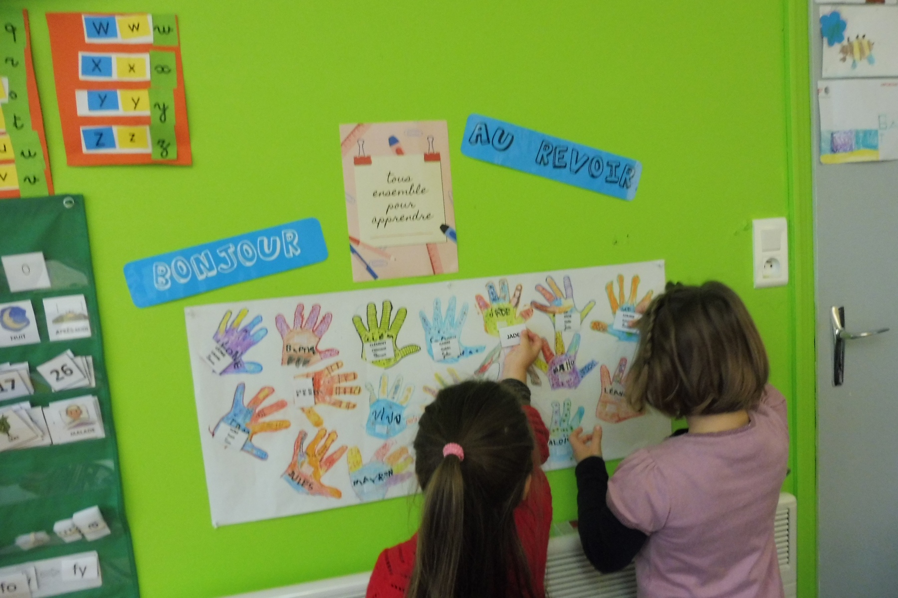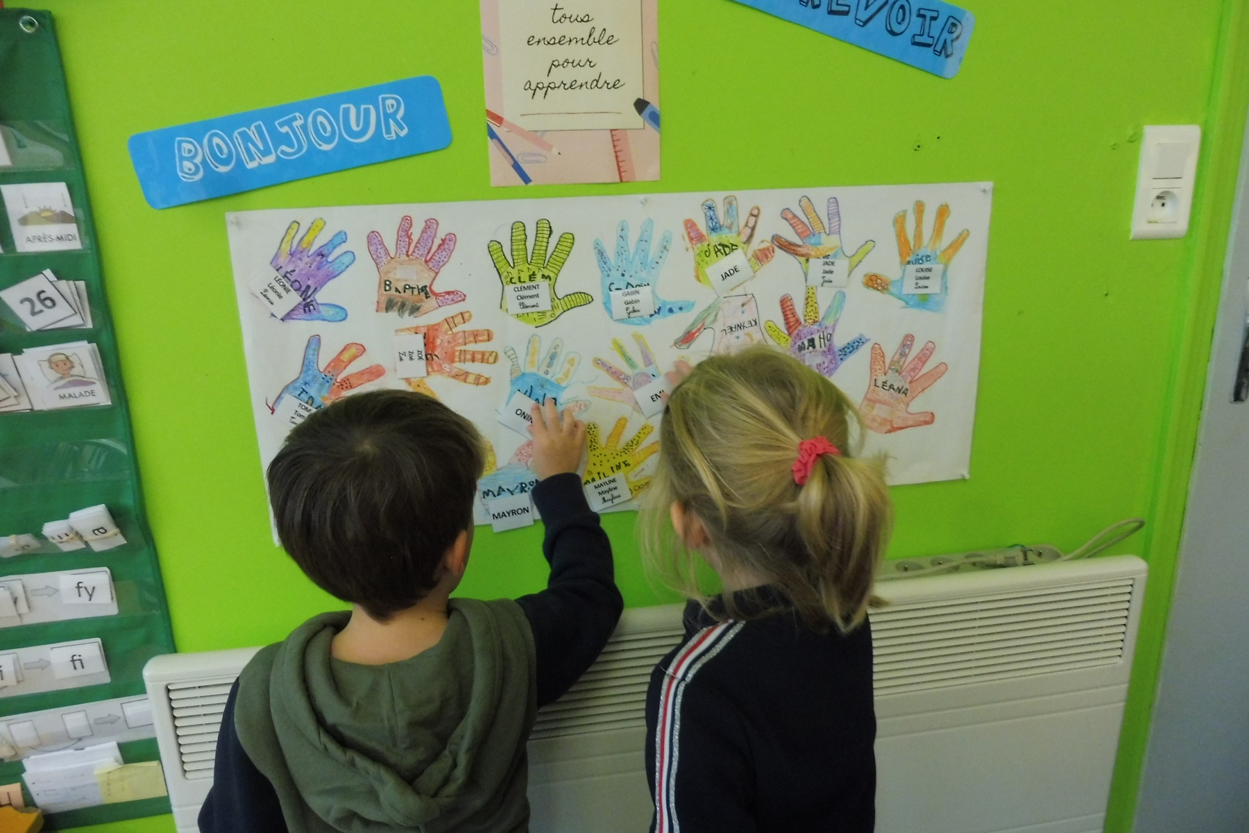 Depuis le lancement du projet en septembre, nous avons bien compris que pour apprendre nous avons besoin des autres. Nous avons donc créé notre panneau de présence et la décoration de la porte d’entrée pour montrer notre volonté de travailler main dans la main.